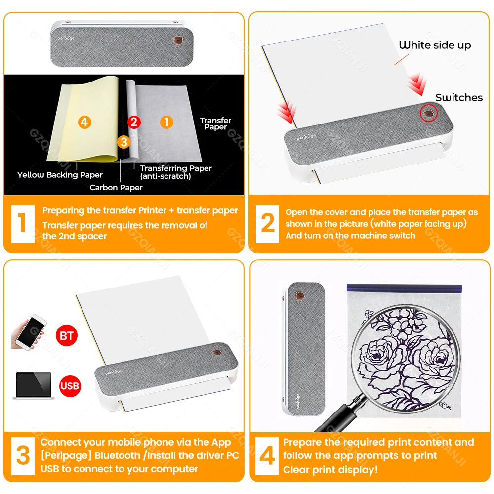 A4 Thermal Printers Wireless Tattoo Transfer Bluetooth USB Mobile Printer Machine Text PDF Document Printing Maker with Paper